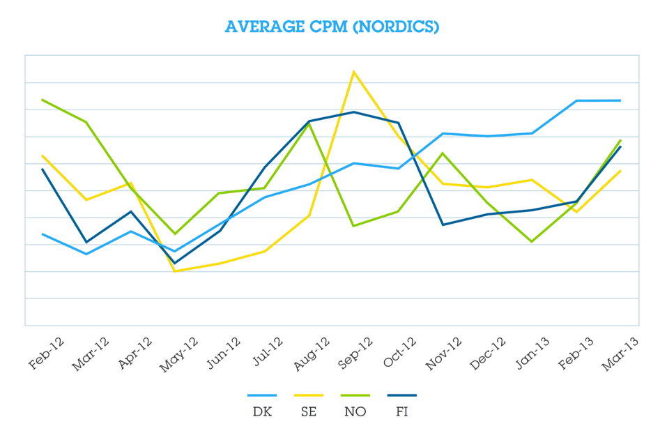 In the first quarter of 2013, however, all four countries appear to follow the same trajectory, with CPMs steadily going up throughout the region. By March, the price differential narrowed considerably.