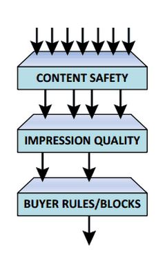 The visual alongside is a schematic representation of the filters that apply against inventory processed in a standard Ad Exchange. A significant portion of the inventory is filtered for issues of content safety (hate, pornography) and impression quality (fraud and bot checks) before being enabled for bidding across the exchange. Further scrutiny of impression-level data attributes is undertaken by the buyer before a bidding decision is made. There is a considerable amount of inefficiency in this process that (i) prevent publishers from fully monetising their inventory and (ii) advertisers from receiving best returns for their investments.