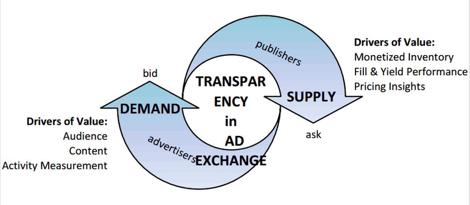Ad Platforms are uniquely positioned to package and transmit impression-level attributes that are of value to the advertiser while helping publishers rightfully monetise and minimise the gap between their ask price and advertiser valuation. The figure below captures the role of the exchange in facilitating transparency of attributes that drive value for both the publisher and the advertiser.